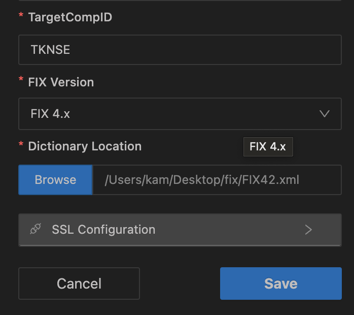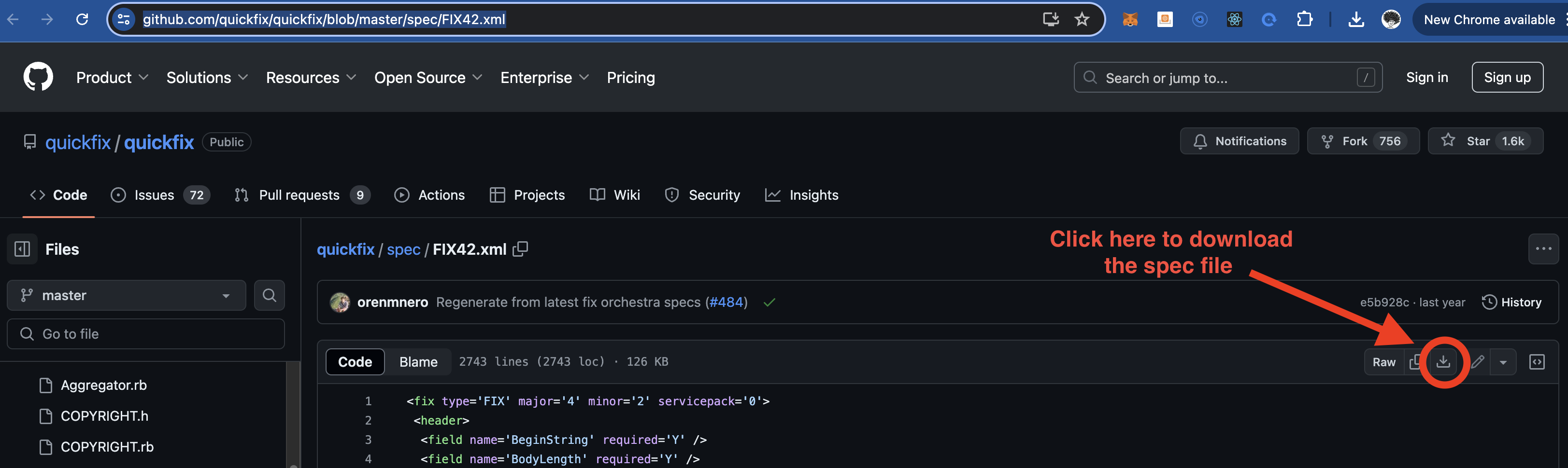 Moving on with the form, you need to provide a Dictionary XML File containing the FIX 4.x Specification. In order to download this file, open your browser and enter the following link: FIX42 . Then click on the Download button illustrated below to download the file and store it somewhere easy to remember on your computer; let's say your Desktop.