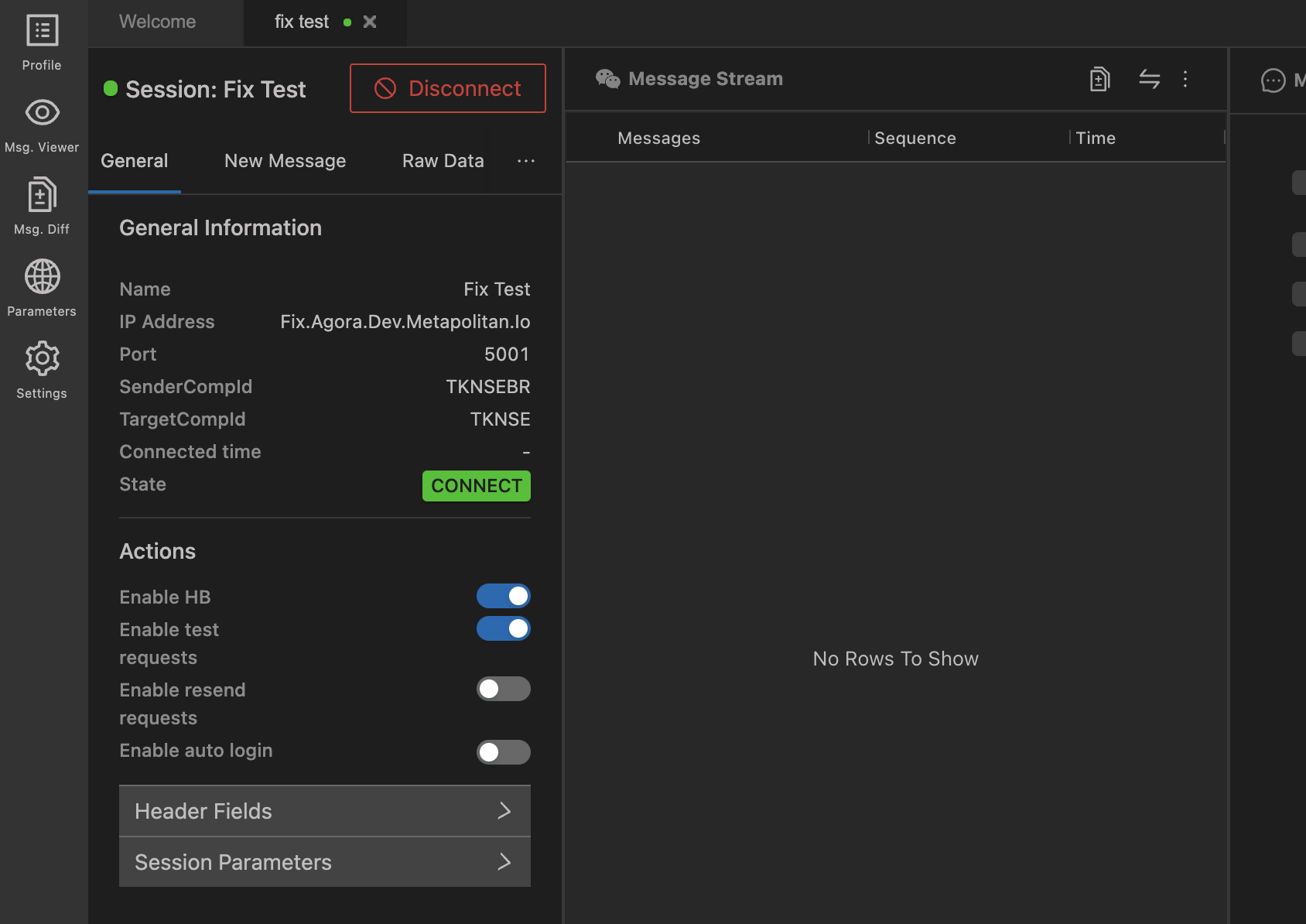 Now, you are connected to the endpoint successfully and you can send FIX messages. The first one must be the LogOn message and we will cover it in the next section.